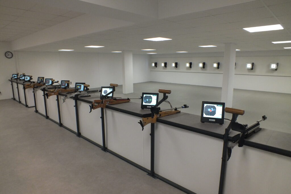 Geschossen wird auf dem neuen Luftgewehr-Schießstand im Keller des, im vergangenen Jahr eingeweihten Dorfgemeinschaftshauses in der Bohnenstraße 1, 47589 Uedem-Uedemerbruch. In diesem Zusammenhang wurden durch die Schützen und weitere Unterstützer im Rohbau des Kellers für den neuen Schießstand über 700 Stunden Eigenleistung erbracht. Hinzu kamen noch Materialspenden, die die Anlage zu einem Vorzeigeobjekt machen. Dort findet man nunmehr elf elektronische Luftgewehr-Bahnen. Im Trainingsbetrieb sind davon neun Bahnen für Luftgewehre und zwei Bahnen für Lichtpunktsimulationsgewehre eingerichtet.